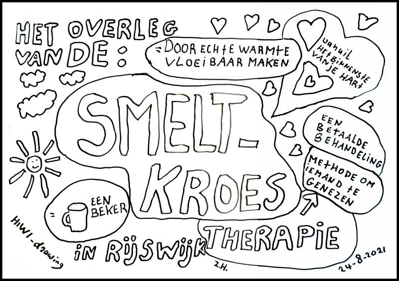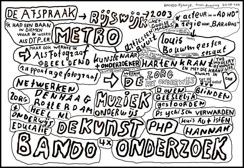 OP ZATERDAG 28-MAART GA IK NAAR BROEDER AAD IN ALKMAAR.IN DE TREIN MAAK IK DEZE HIWI-DRAWING(VERHAALTEKENING) EN VERTEL IK : MIJN VERHAAL VOOR RIJSWIJK